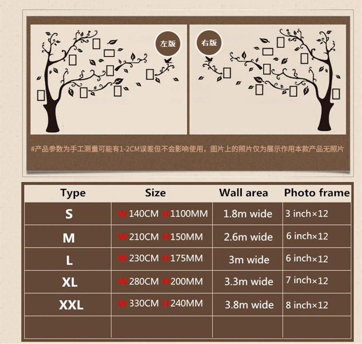 Product Name: 3D di Famiglia FAI DA TE Da Sposa Photo Albero IN PVC Decalcomanie Della Parete, Arte Home TV di Sfondo Decorazione Della Parete Adesivi, 4 dimensioni Della Parete di Poster Murale