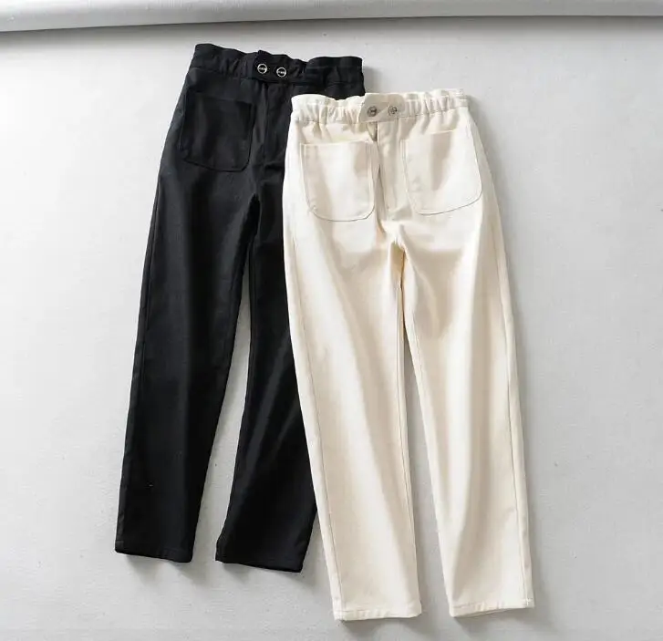 Product Name: 2019 Vintage Bianco Nero Dei Jeans A Vita Alta Pantaloni In Denim Primavera Estate Jeans Delle Donne Button Fly Pantaloni di Lunghezza Della Caviglia