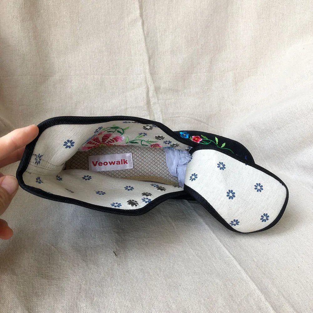 Special Offer Veowalk Retro Delle Donne Ricamato In Cotone Lace up Breve Stivali Piatti, Signore di Autunno Casual Cinese Del Ricamo Scarpe Comfort Stivaletti Discount 48% Today!