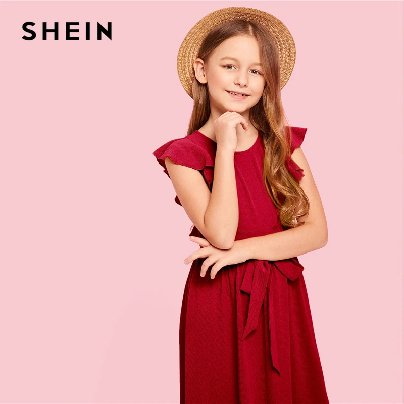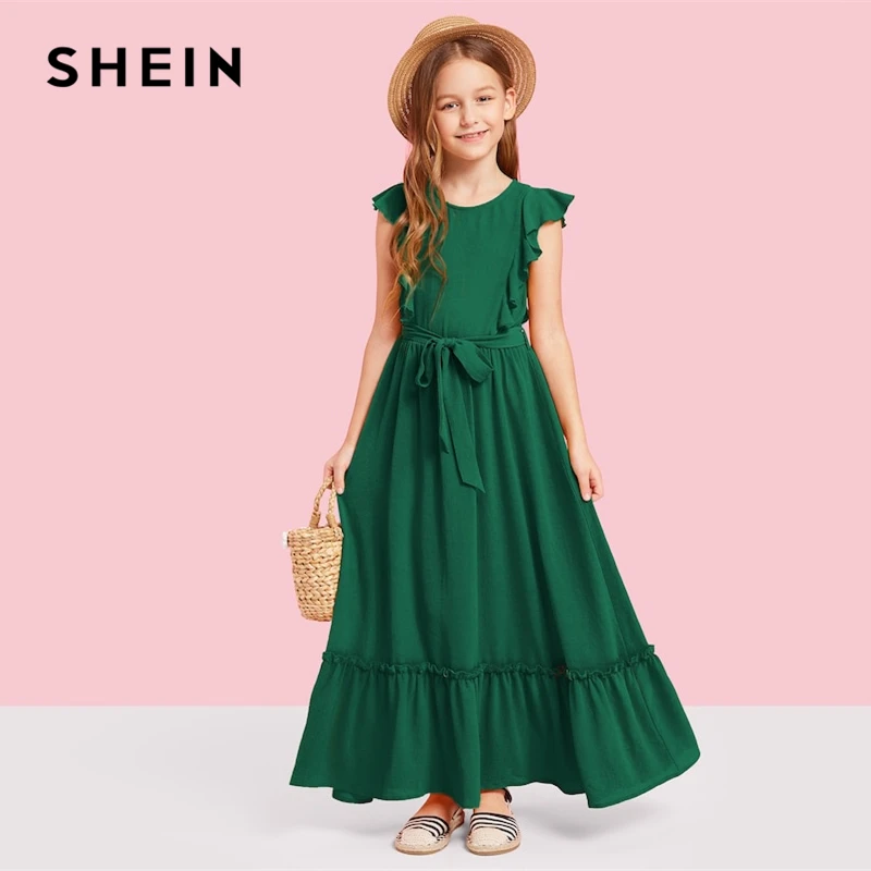 Special Offer SHEIN Kiddie Borgogna Della Chiusura Lampo Posteriore Del Bordo Dell increspatura Ragazza Adolescente Partito Maxi Vestito 2019 Estate Verde Senza Maniche UNA Linea di Capretto Ragazze abiti Discount 42% Today!