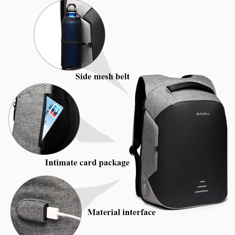 Product Name: BAIBU Uomini Multifunzione Zaino Anti furto 15.6 \"Zaino Del Computer Portatile USB di Ricarica Delle Donne impermeabile di Affari Grande Viaggio Backbag