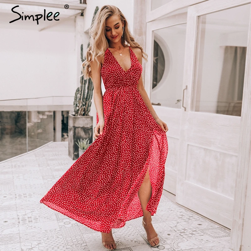 Product Name: Simplee Boho profondo scollo a v backless vestito sexy Split croce lace up chiffon della spiaggia di estate abito lungo Senza Maniche maxi vestito abiti