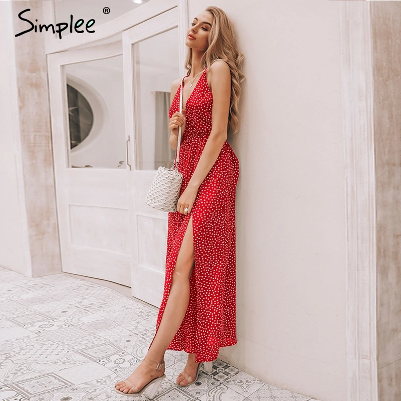 Special Offer Simplee Boho profondo scollo a v backless vestito sexy Split croce lace up chiffon della spiaggia di estate abito lungo Senza Maniche maxi vestito abiti Discount 44% Today!