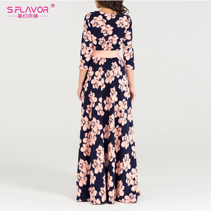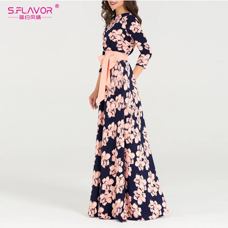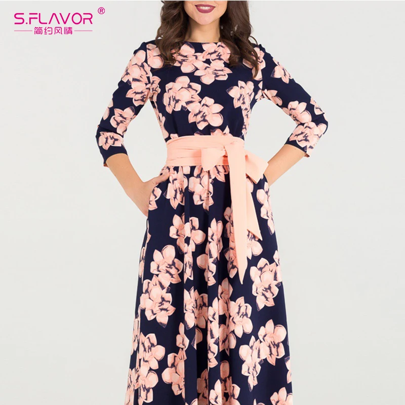 Special Offer S. SAPORE di stampa Delle Donne di Autunno Inverno vestito Elegante O Collo allentato lungo vestito da partito per la femmina donne Calde di vendita abiti Senza tasche Discount 47% Today!