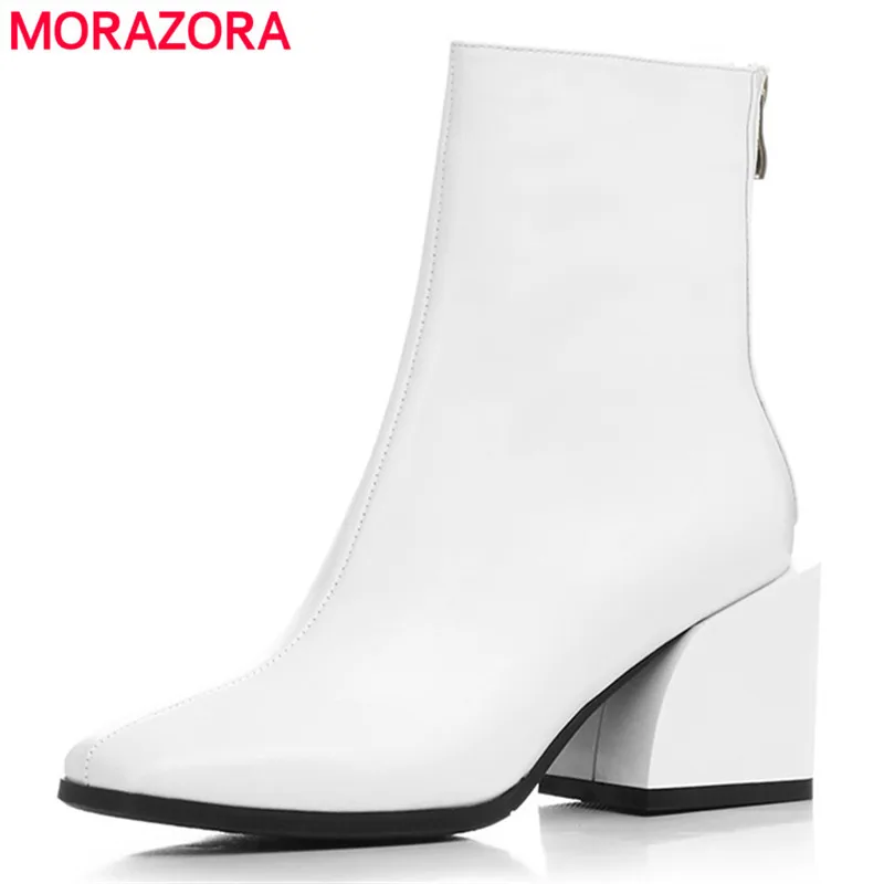 Special Offer MORAZORA 2020 di alta qualità pieno genuino scarpe di cuoio delle donne della caviglia stivali zip tacchi quadrati Chelsea stivali pattini di vestito da modo donna Discount 48% Today!