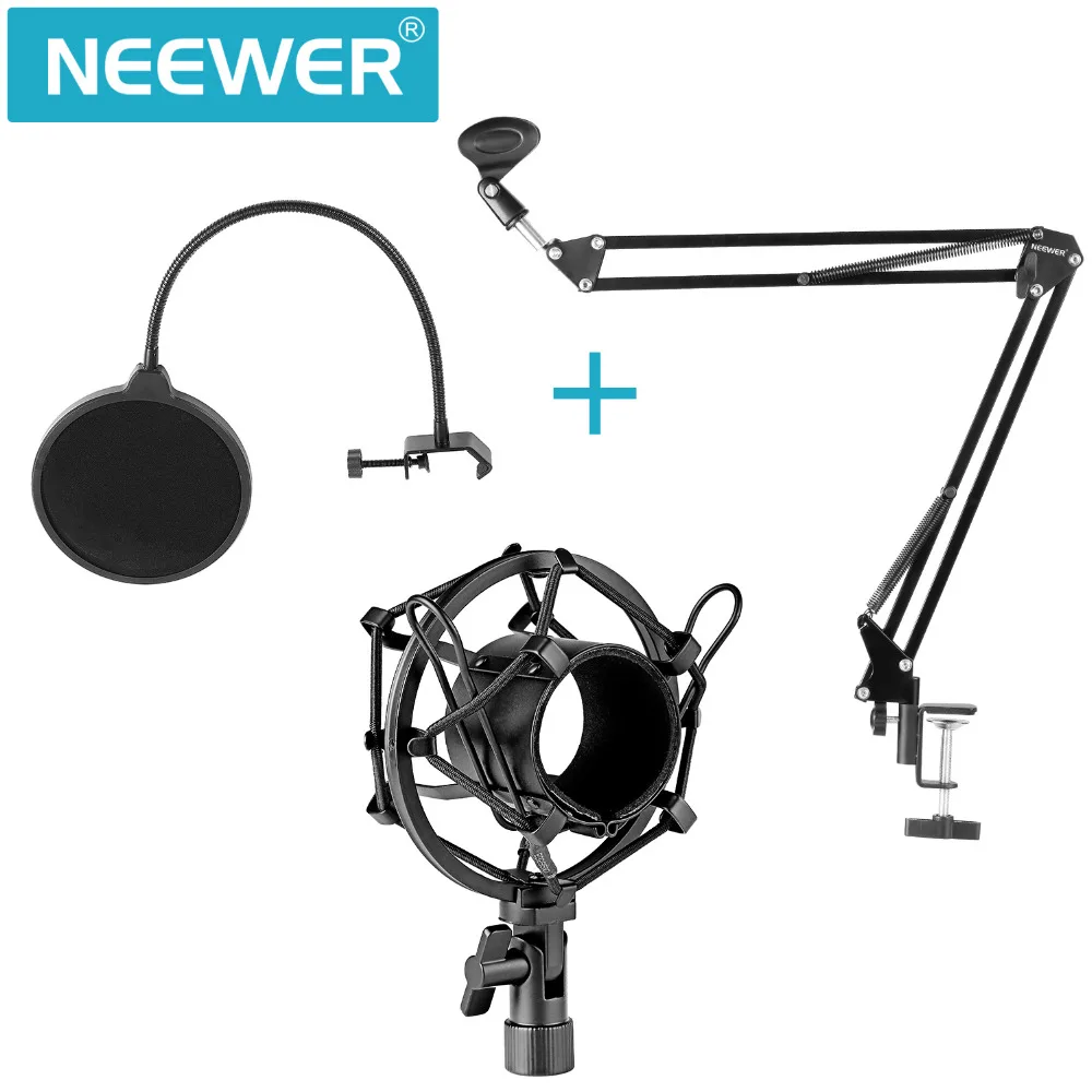 Special Offer Neewer NB 35 Microfono Braccio di Sospensione Supporto Del Basamento Della Clip e Morsetto Da Tavolo Pop Filtro Parabrezza Maschera Shock Mount Kit Discount 0% Today!