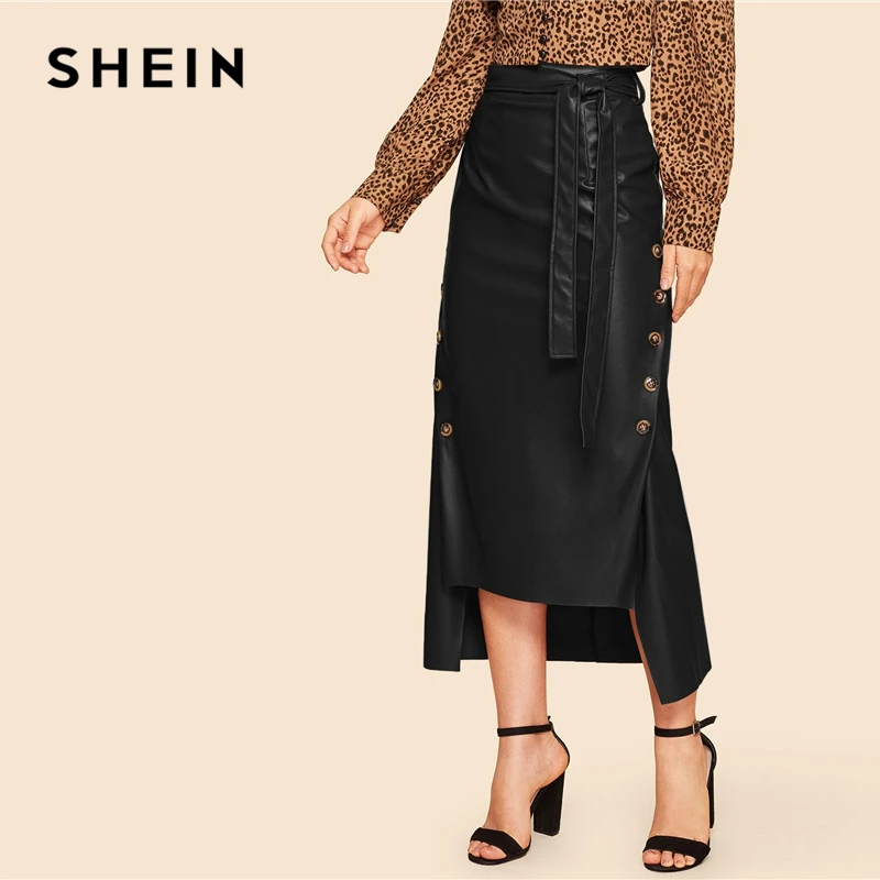 . (40% Off) Comprare SHEIN Marrone Elegante Split Orlo Anteriore Doppio Pulsante Con Cintura In Pelle Sguardo Lungo Pannello Esterno Della Signora Dell ufficio Solido Abbigliamento Da Lavoro Maxi Gonne Economici Prezzo Online.