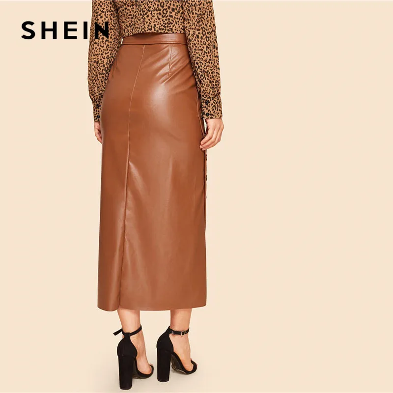 Special Offer SHEIN Marrone Elegante Split Orlo Anteriore Doppio Pulsante Con Cintura In Pelle Sguardo Lungo Pannello Esterno Della Signora Dell ufficio Solido Abbigliamento Da Lavoro Maxi Gonne Discount 40% Today!