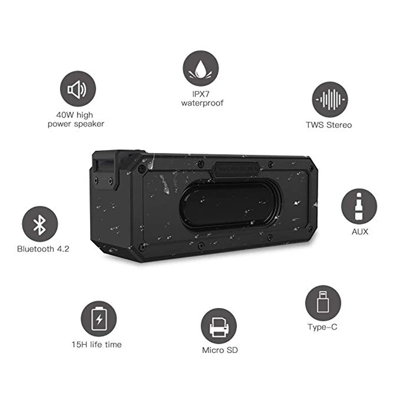 Product Name: 40W Speaker Bluetooth IP7X Impermeabile Colonna Portatile Speakr Super Bass Subwoofer Soundbar Sistema Audio Scatola di Musica Boom Del Computer