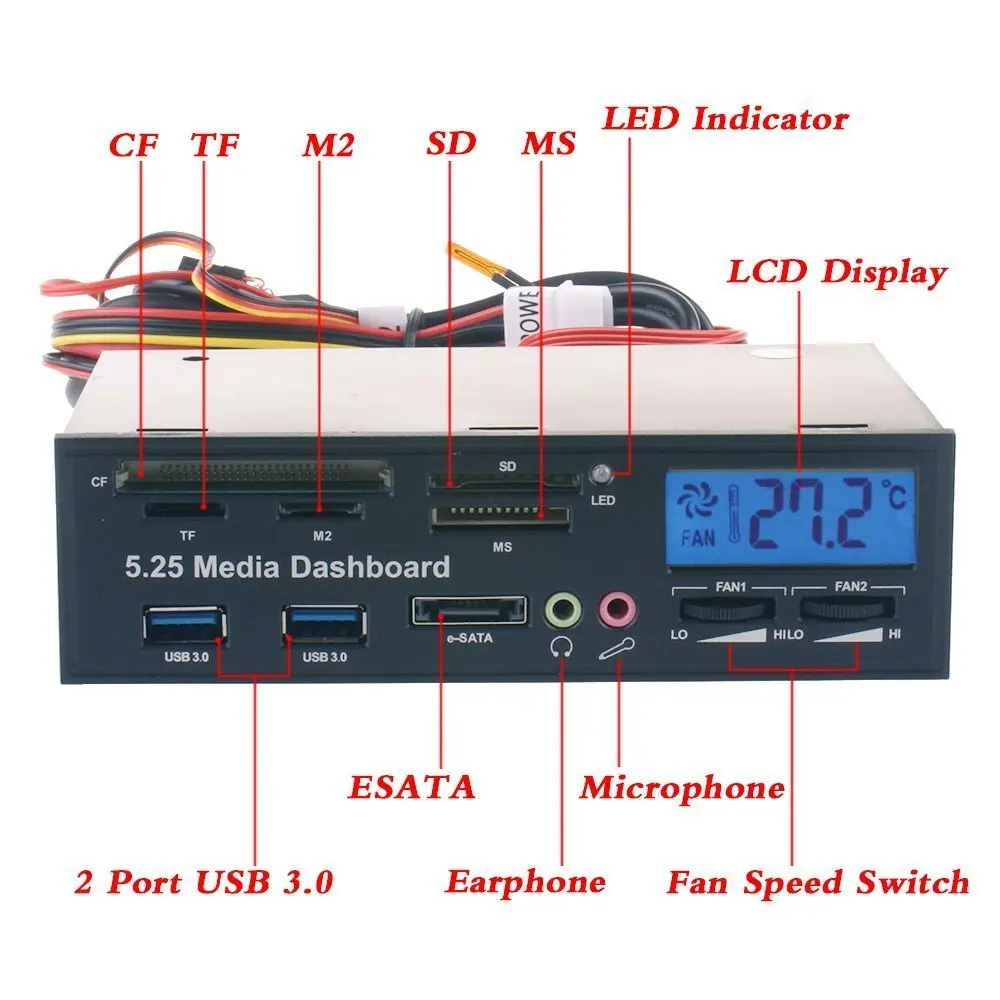 Special Offer Multi funzionale Media Pannello 5.25 \"Computer Cruscotto Anteriore con SATA USB Microfono Cuffia Audio Porta Scheda Integrata lettore di Discount 19% Today!