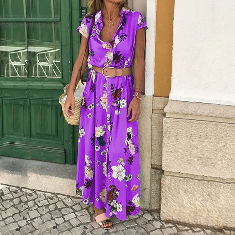 Special Offer VIEUNSTA Donne Dell annata del Risvolto Button Con Scollo A V Boho di Estate del Vestito Stampa Floreale Manica Corta Vestito Estivo Elegante Con Cintura Maxi Vestiti Lunghi Discount 30% Today!