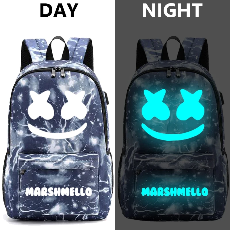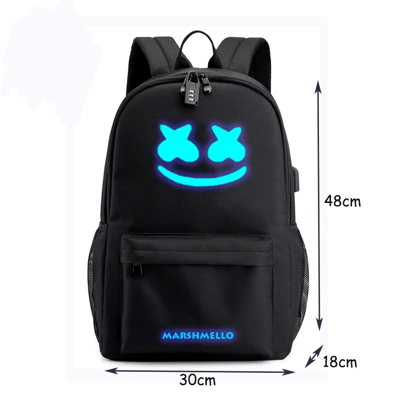 Product Name: Tela di canapa Luminoso Impermeabile DJ Marshmello Anti furto Del Computer Portatile Zaino per I Ragazzi Adolescenti Ragazze Studente di Scuola Zaino Degli Uomini di Womenbag