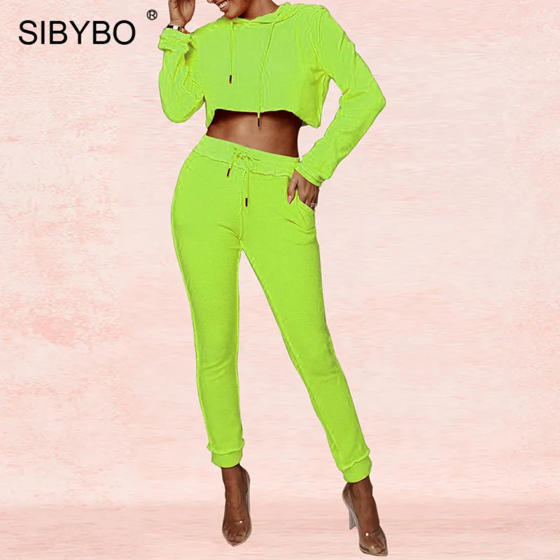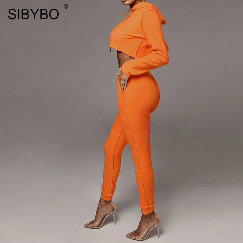 Special Offer SIBYBO Autunno Con Cappuccio Casual Donne Felpe e Pantaloni Set Manica Lunga Abbigliamento Sportivo A Due Pezzi Set Delle Donne Tasche Slim Sexy Delle Donne set Discount 40% Today!