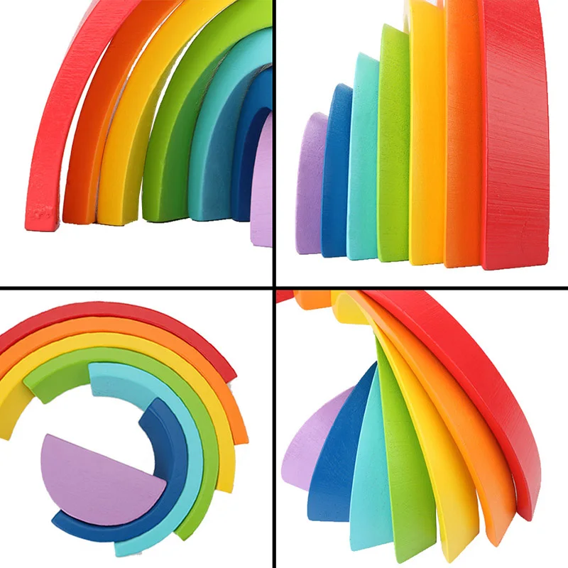 Product Name: Montessori Di Legno Arcobaleno Di Puzzle Colorato Ponte Ad Arco Montare giocattoli educativi Blocchi di Costruzione del Giocattolo Set di Forme di Smistamento In Età Prescolare